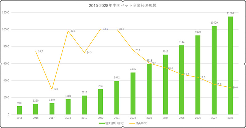 * 中国ペット産業経済規模は、2025年8000億元に達する見込み
